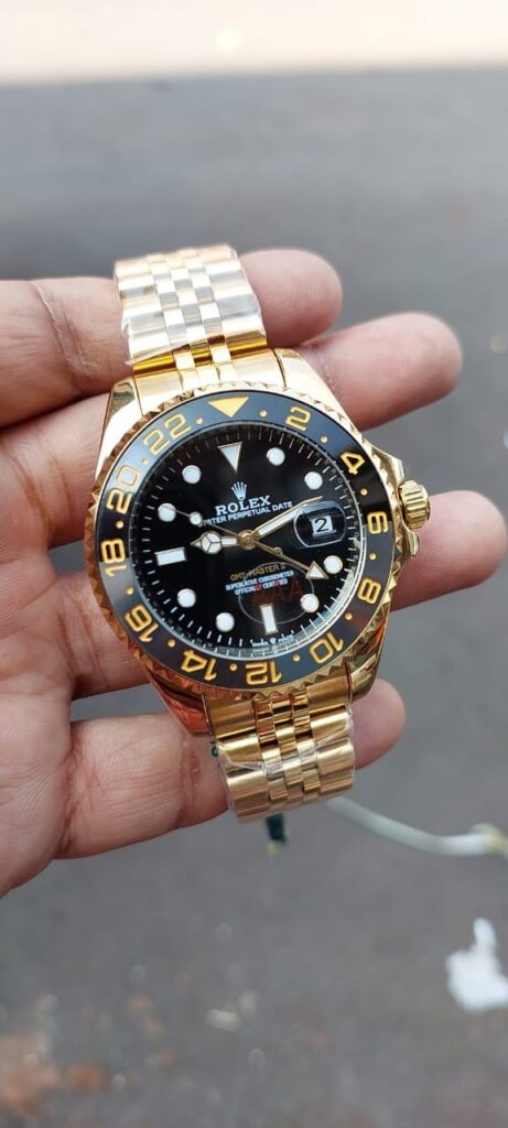 The RLX GMT Master Quartz is a men’s luxury watch designed for precision and style. Built with premium 7AAA quality, it features a high-quality quartz movement powered by battery. The 40MM case houses a black dial protected by sapphire crystal glass. Its rotating 24-hour bezel (GMT function) and stainless steel oyster band with original-style lock make it perfect for travelers and professionals.
