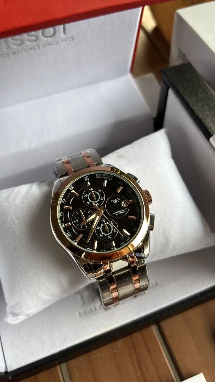 The TST TS-0165 Silver Black Chronograph is a premium men’s luxury watch combining precision, style, and durability. Featuring Semi ETA Quartz chronograph movement, a 42MM stainless steel silver case, and a black chronograph dial with luminous markers and hands, it is perfect for office, casual, or party wear. The stainless steel silver bracelet with original lock ensures comfort while adding a luxury touch.
