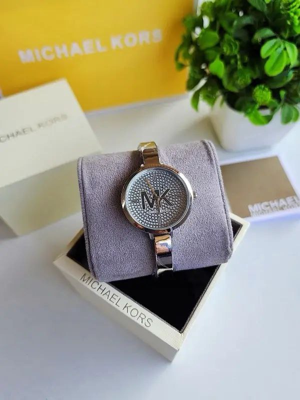 The MK Charley Pave Silver is a stunning women’s timepiece designed for elegance and sophistication. Featuring a 38MM stainless steel case with a silver dial adorned with pave detailing, this watch perfectly blends style and functionality. Its quartz movement ensures accurate timekeeping, while the stainless steel bracelet with original lock guarantees comfort and durability. The mineral/sapphire glass protects the dial, and its water-resistant design makes it ideal for everyday wear or special occasions.